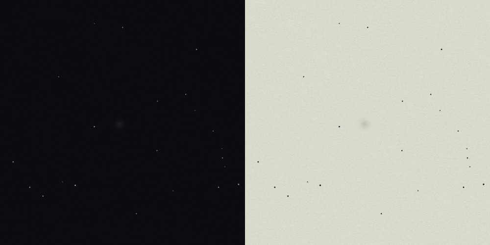 Small and round galaxy, right behind a m13 foreground star, which should not be mistaken for the core. The star makes the observation tricky, because the galaxy looks more like a planetary nebula because of it. No further details are seen.