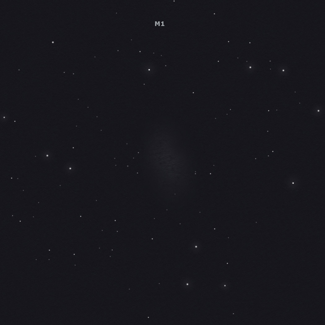 First one is M1, The Crab Nebula. A real showpiece. It’s large and bright and has the shape of a glove. The nebula resides in a very rich star field and is not evenly iluminated across its surface; a network of “threads” can be seen, mostly running from left to right and up a bit, but it’s very subtle. Just as some darker zones or pockets. When using a OIII filter, the nebula becomes broader and shows a brighter area on the left side and two dark lanes. Interesting. Sketched with the 16″ Alkaid @201x.